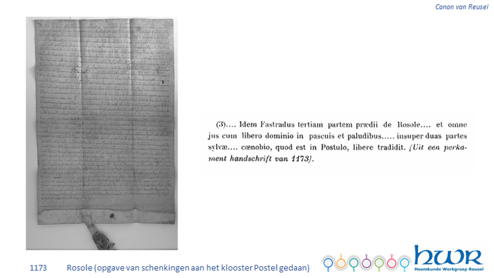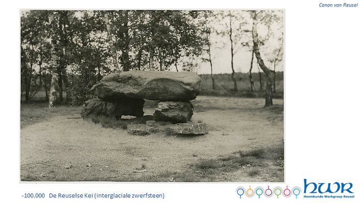 Veel dorpen en steden beschikken inmiddels over een canon. Een canon is een overzicht met teksten en beelden in chronologische volgorde, waarmee de belangrijkste gebeurtenissen van een dorp, stad of land worden weergegeven. Reusel met zijn rijke historie kan daar natuurlijk niet bij achterblijven. Dit heeft er toe geleid dat Heemkunde Werkgroep Reusel (mede in het kader van een gezamenlijke Kempencanon) het initiatief heeft genomen een canon over Reusel samen te stellen. Hierbij publiceren we de eerste versie van deze canon van Reusel. Het is nu een overzicht van een twintigtal gebeurtenissen die te maken hebben met de geschiedenis van ons dorp: van de ijstijd tot en met de huidige periode. De verhalen die hierbij horen zijn nog niet af en ook het aantal gebeurtenissen staat nog niet vast. Zo'n canon is eigenlijk nooit klaar. Er wordt aan verbeterd, er wordt geschrapt en er wordt toegevoegd. Vele wijzigingen zijn nog mogelijk. Voor opmerkingen of aanvullingen nodigen wij je uit om contact op te nemen met ons via info@heemkundereusel.nl.